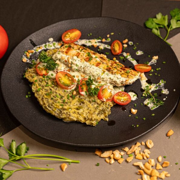 PEIXE ASSADO COM PURÊ DE BANANA...